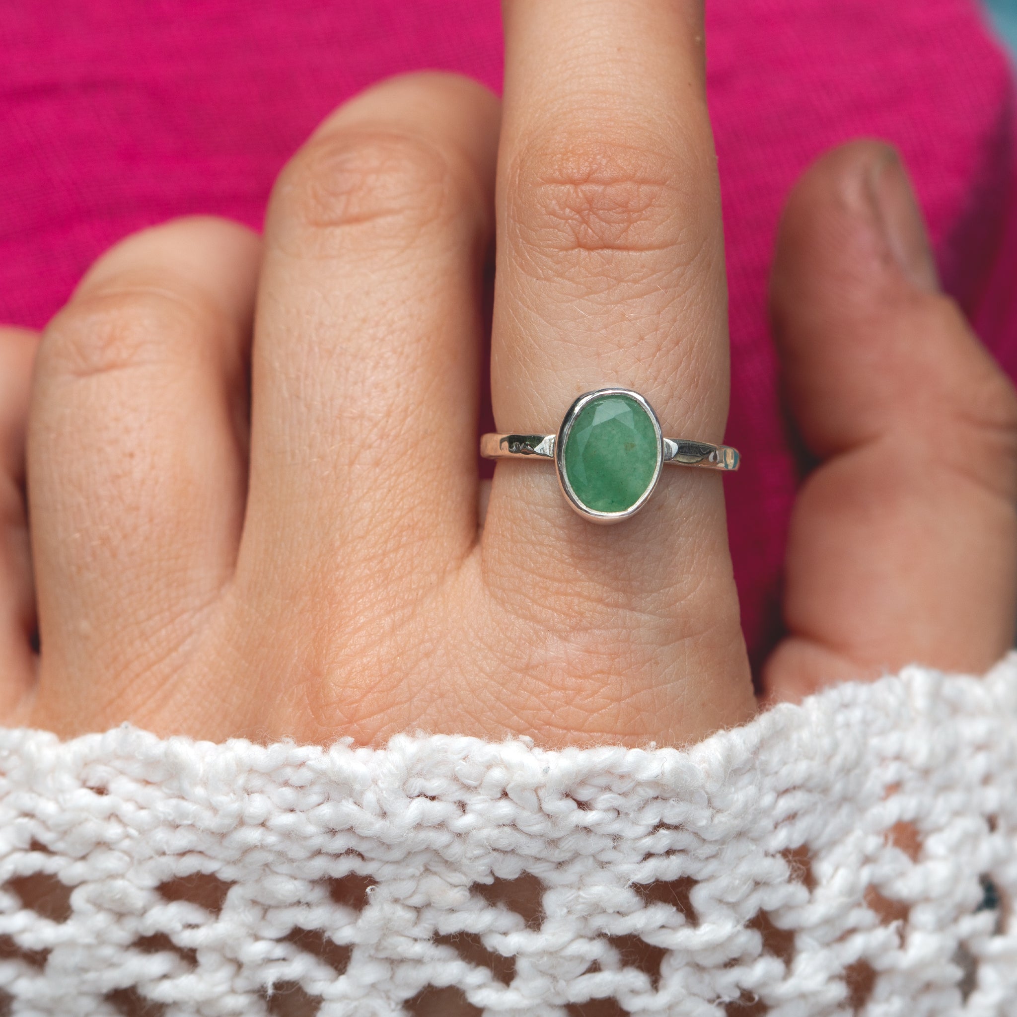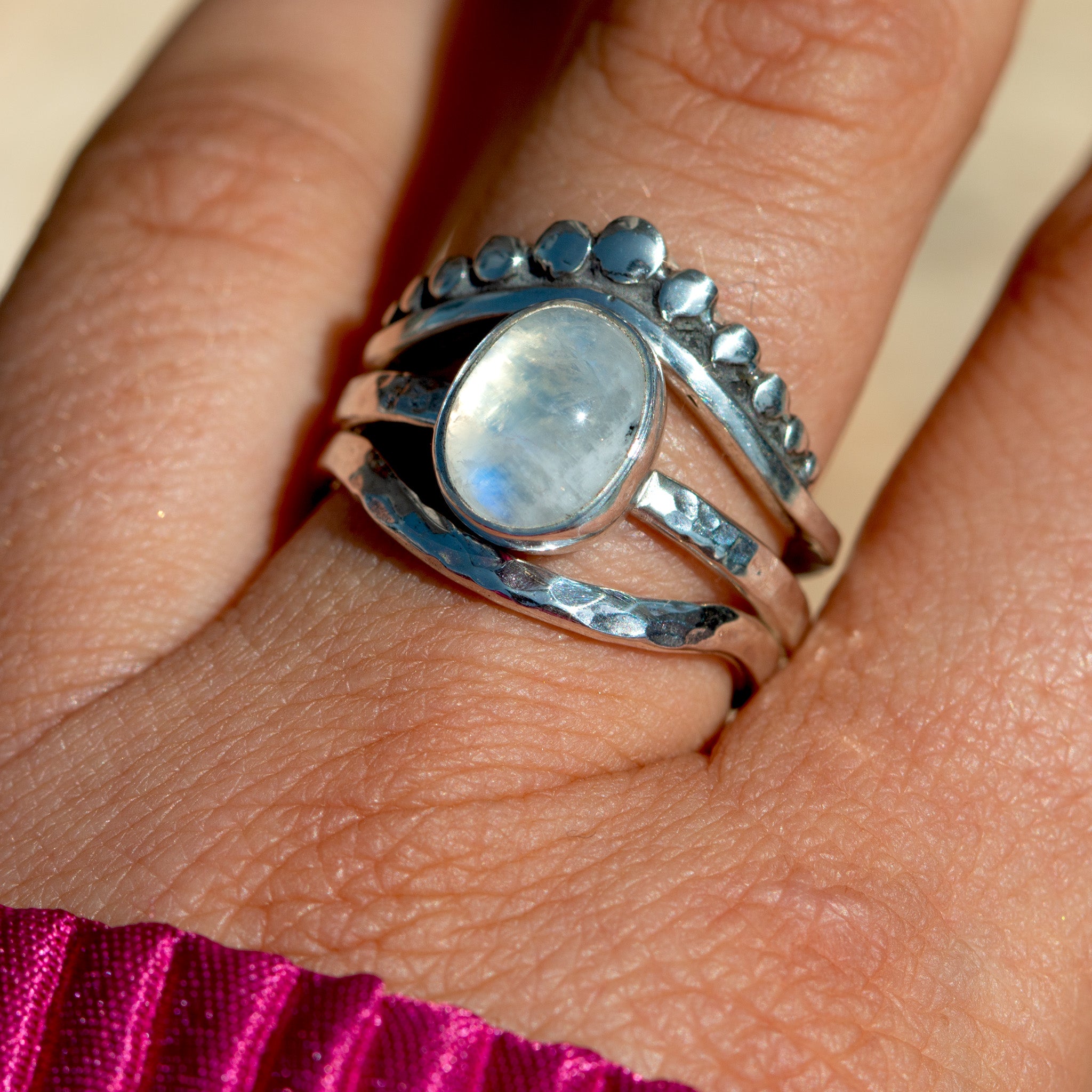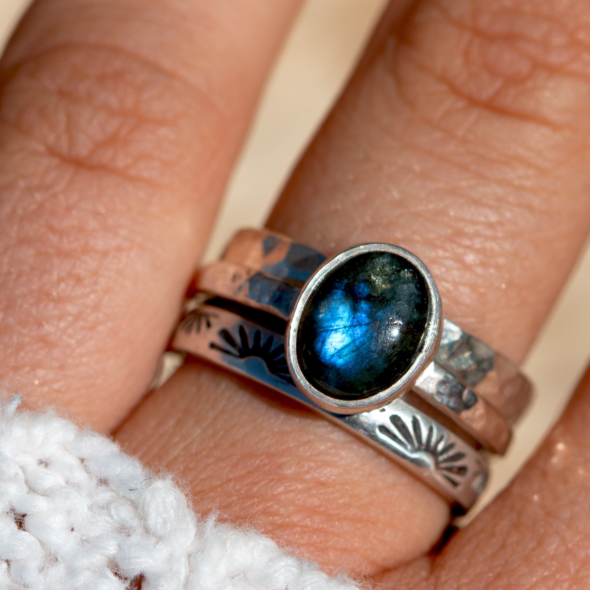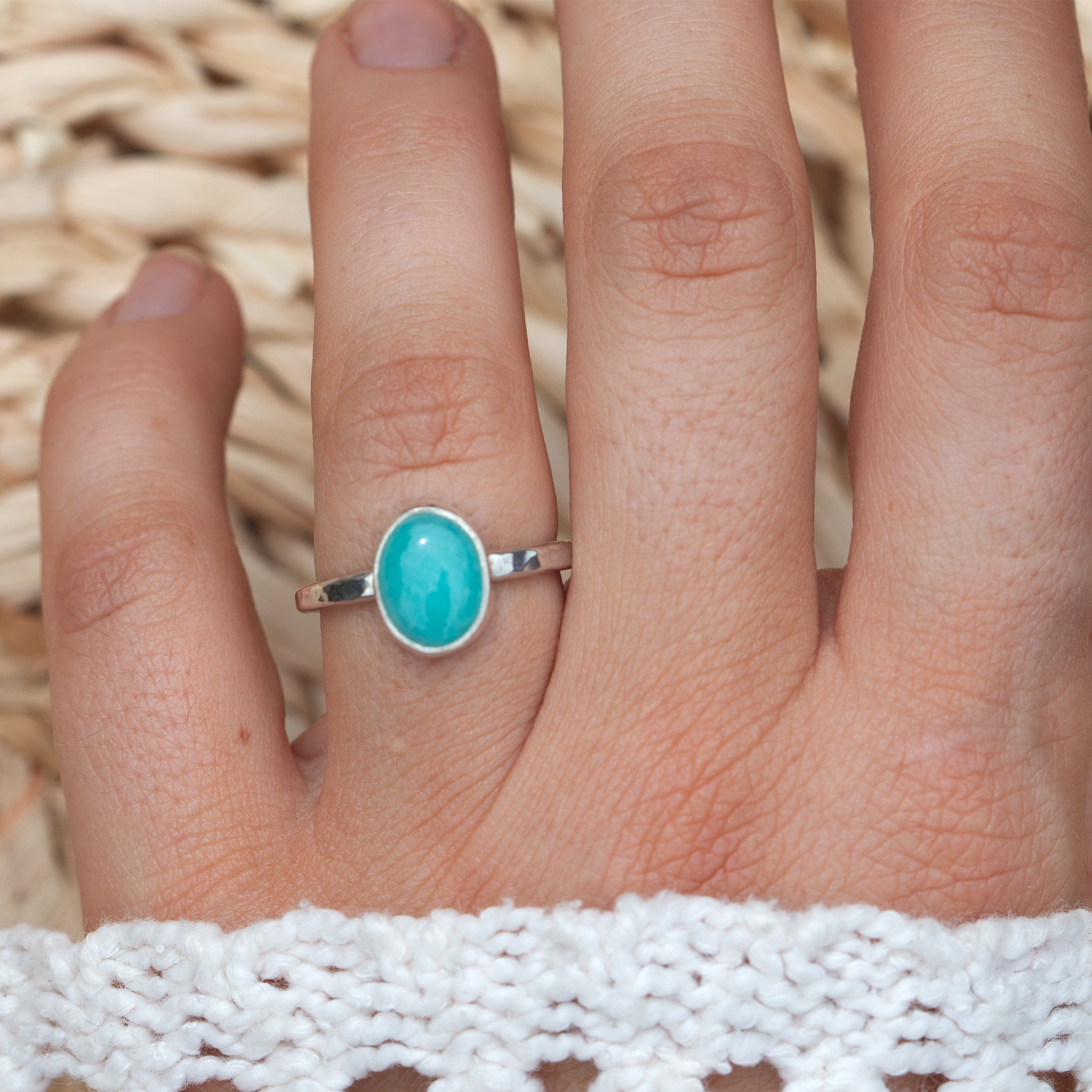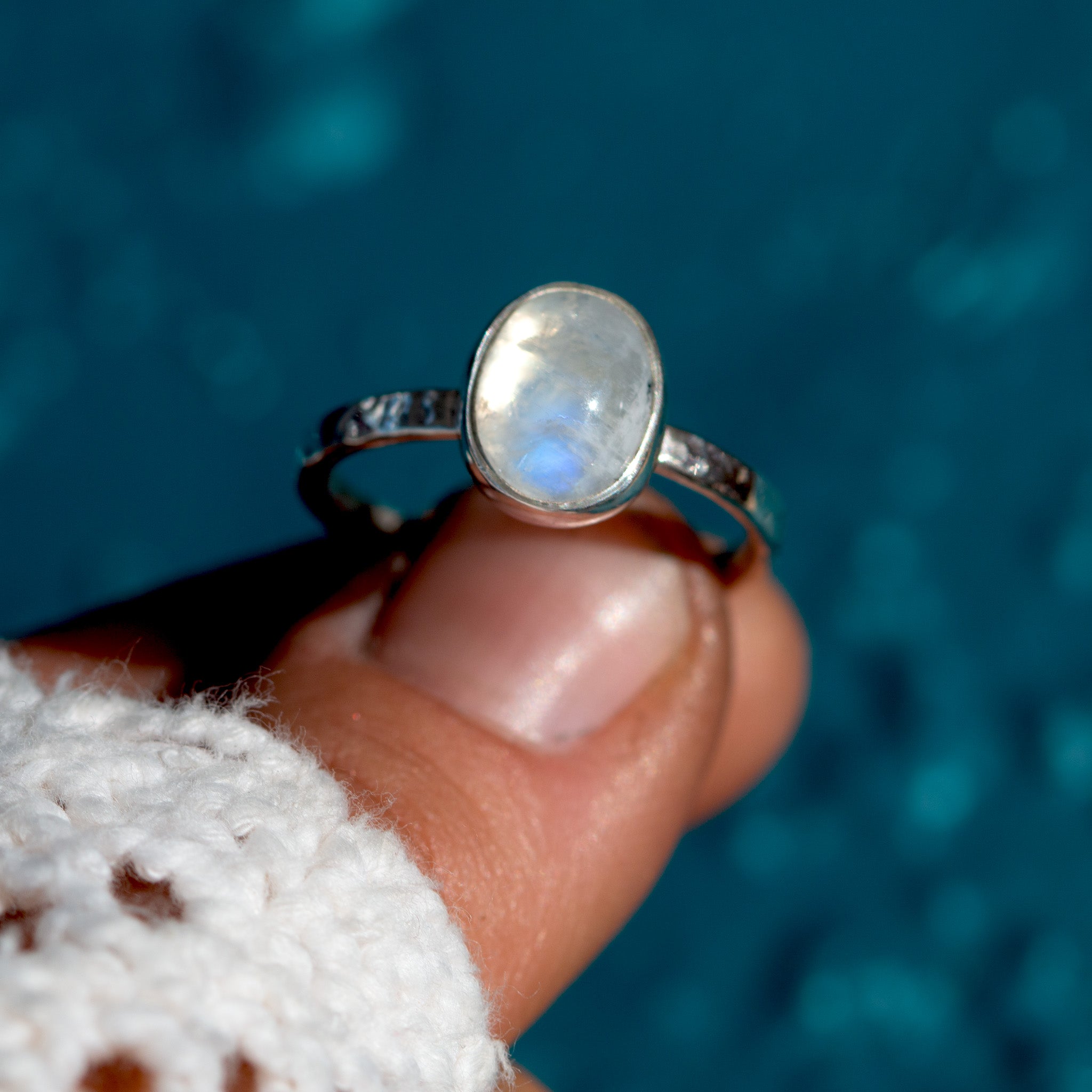This handcrafted gemstone ring is formed out of sterling silver through the process of hammering, where each strike strengthens and brightens the metal, bringing out its character and beauty. In the same way, the seasons we walk through shape us, strengthening us, and refines us.
