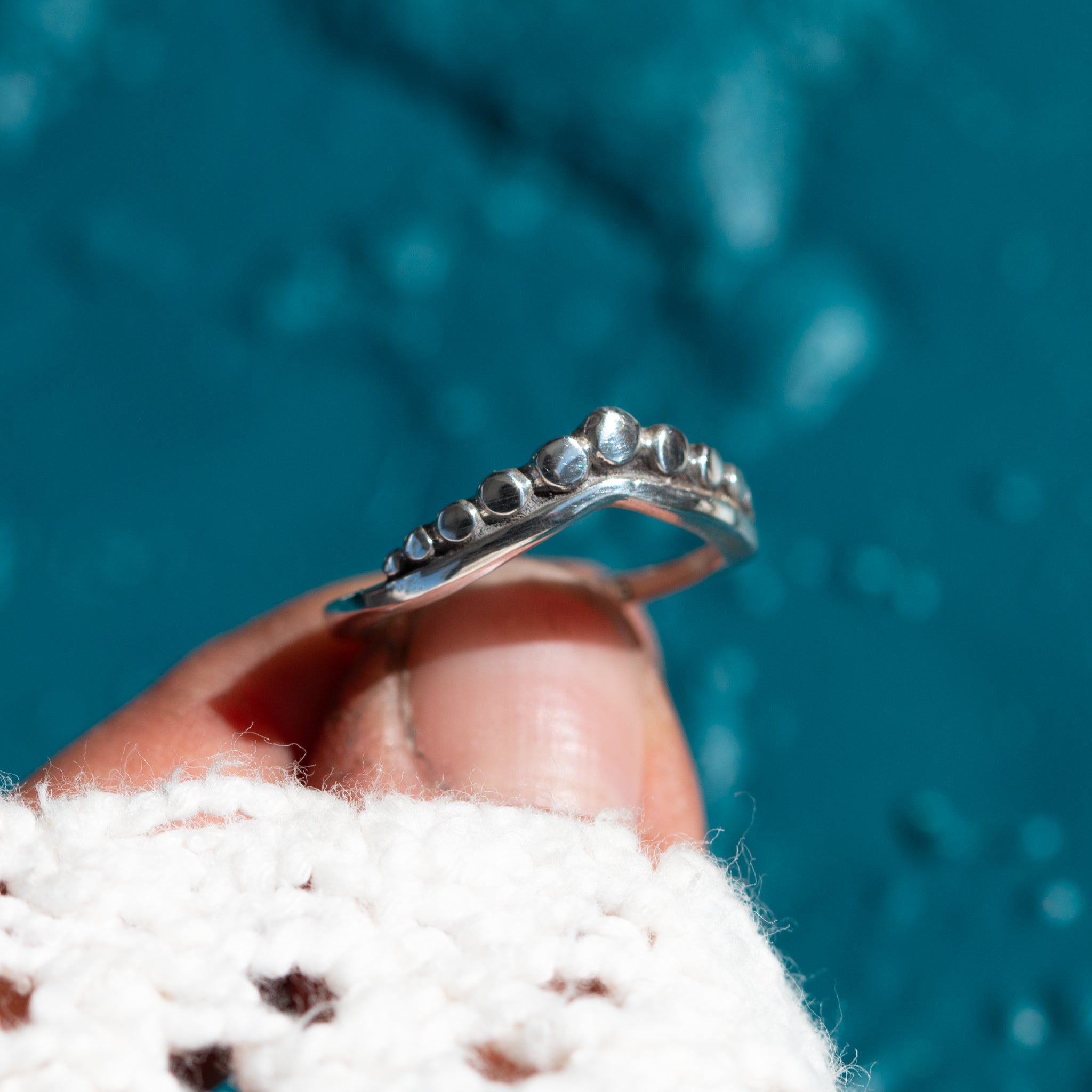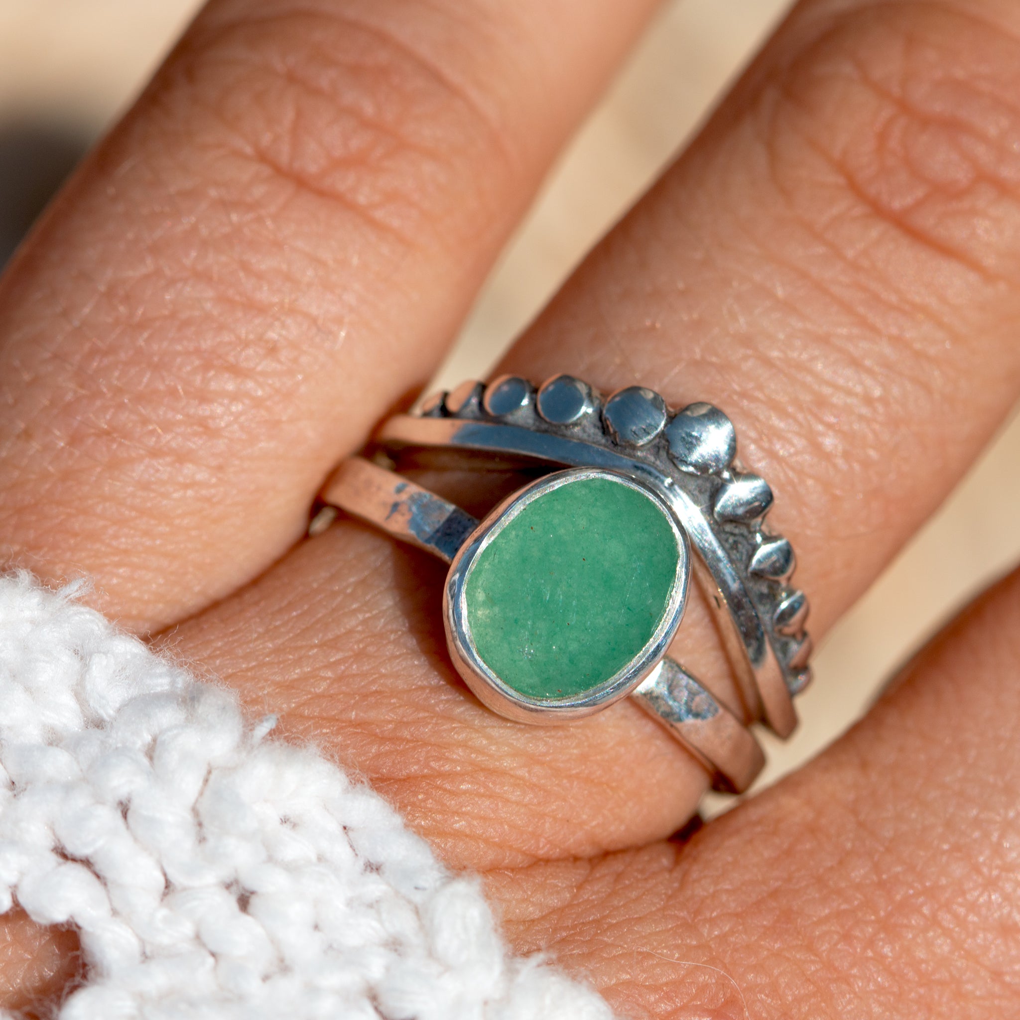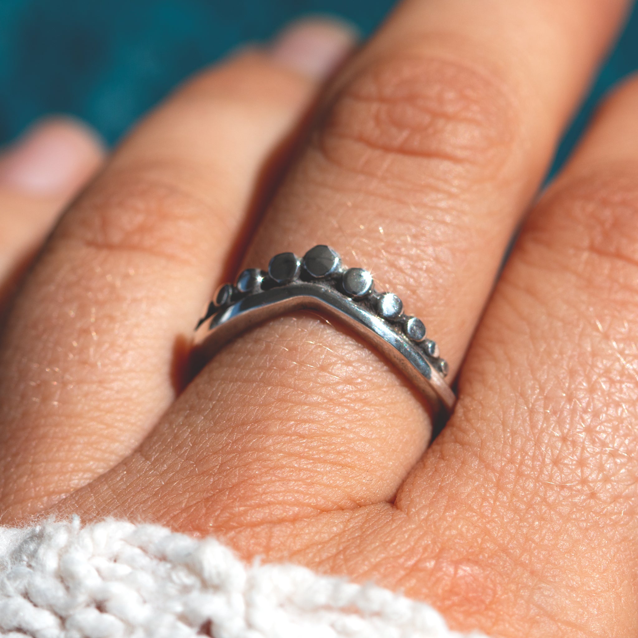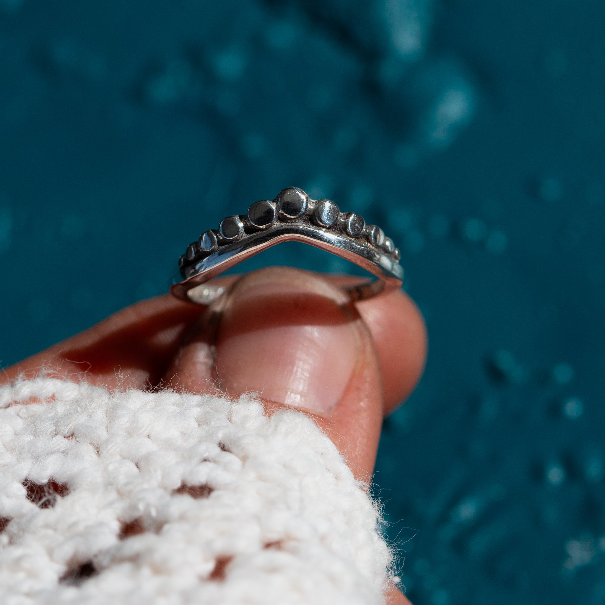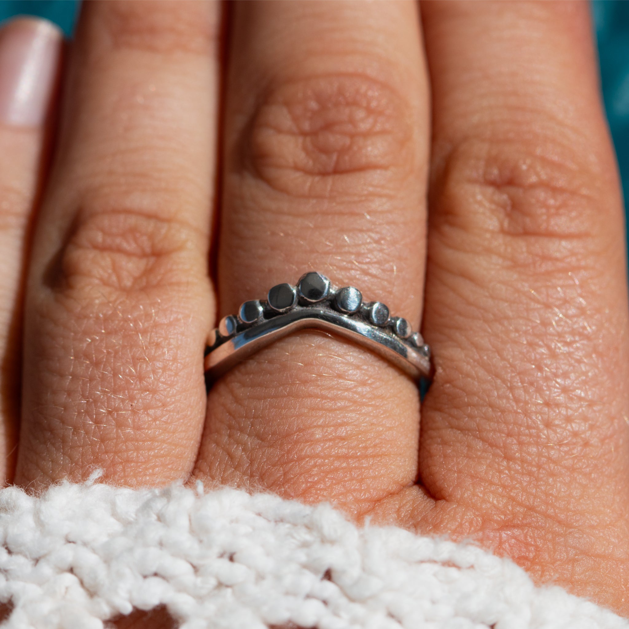 This handcrafted gemstone ring is formed out of sterling silver through the process of hammering, where each strike strengthens and brightens the metal, bringing out its character and beauty. In the same way, the seasons we walk through shape us, strengthening us, and refines us.